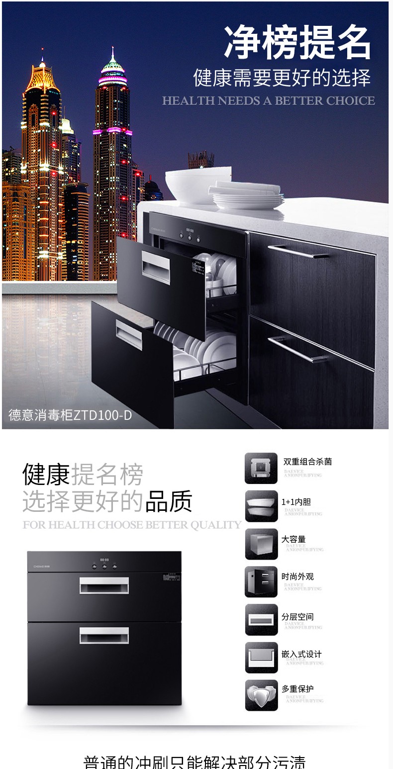 德意家用厨房智能消毒柜嵌入式双重臭氧杀菌紫外线大容量家电100D