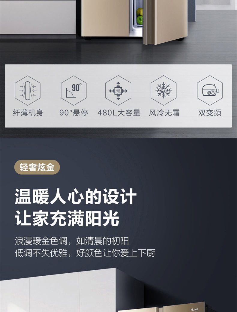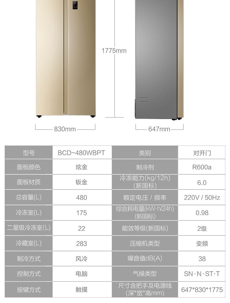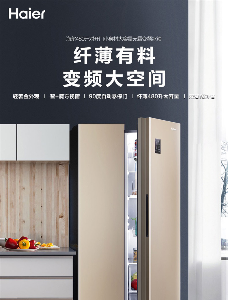 首页 > 家用电器 / 厨房电器 / 大家电 > 大家电 > 冰箱 > Haier/海尔 BCD-480WBPT双开门节能风冷无霜对开门电冰箱大容量