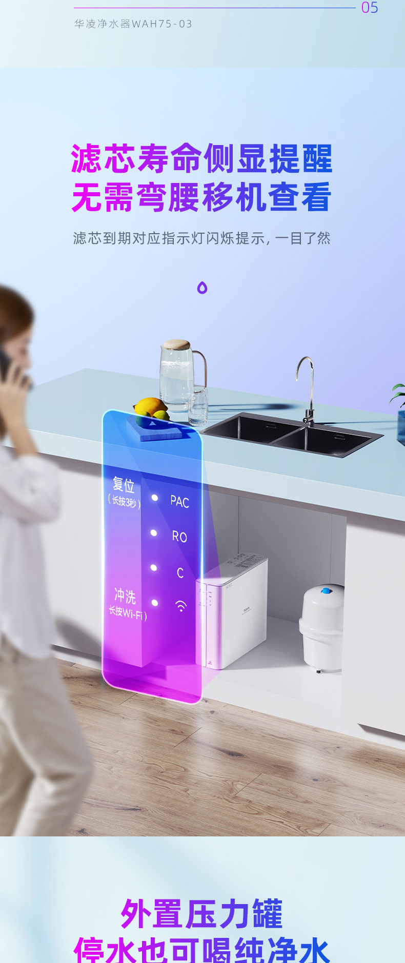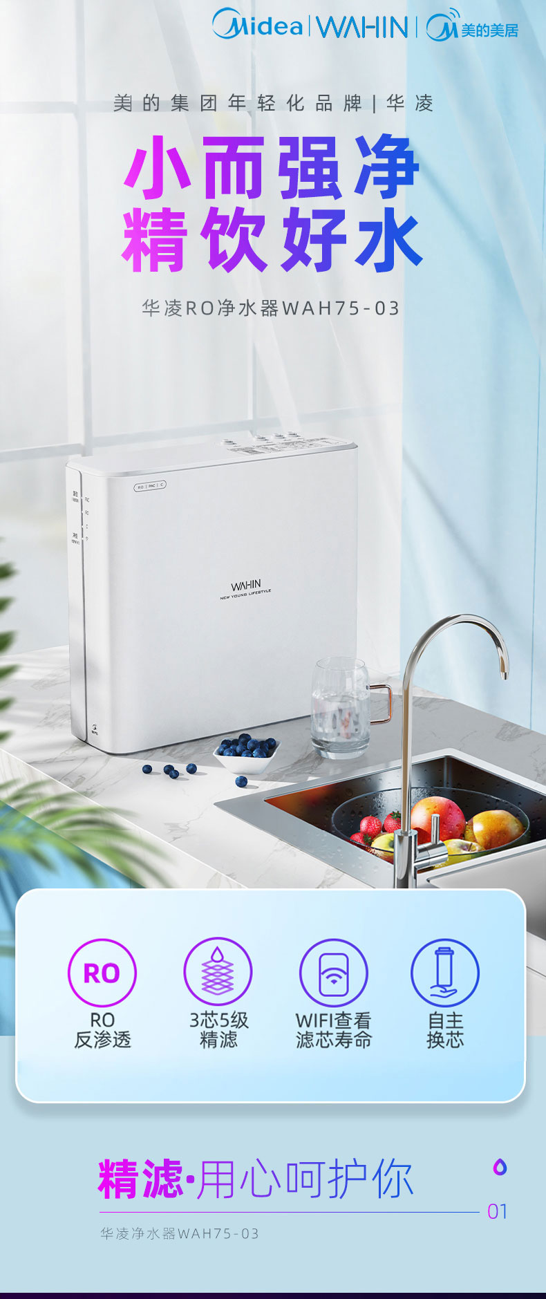 美的出品华凌净水器家用直饮厨房ro反渗透纯水机净水机自来水75