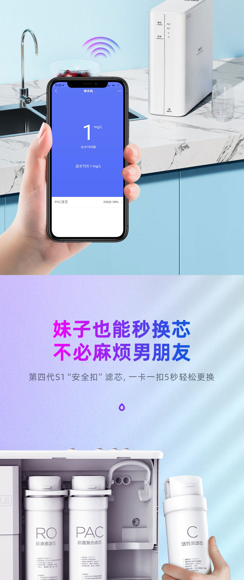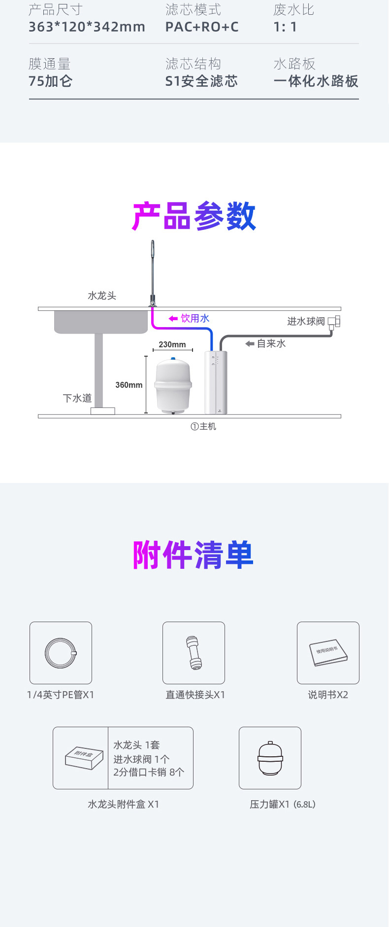 首页 > 家用电器 / 厨房电器 / 大家电 > 生活电器 > 净化器 > 美的出品华凌净水器家用直饮厨房ro反渗透纯水机净水机自来水75
