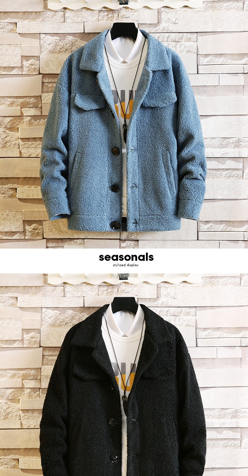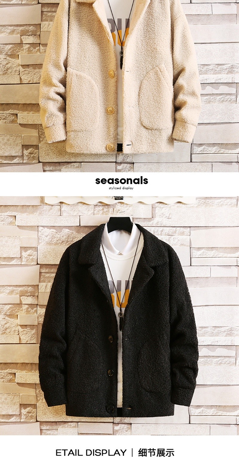 羊羔毛绒外套男士夹克秋冬季韩版潮流帅气加绒加厚休闲男装上衣服