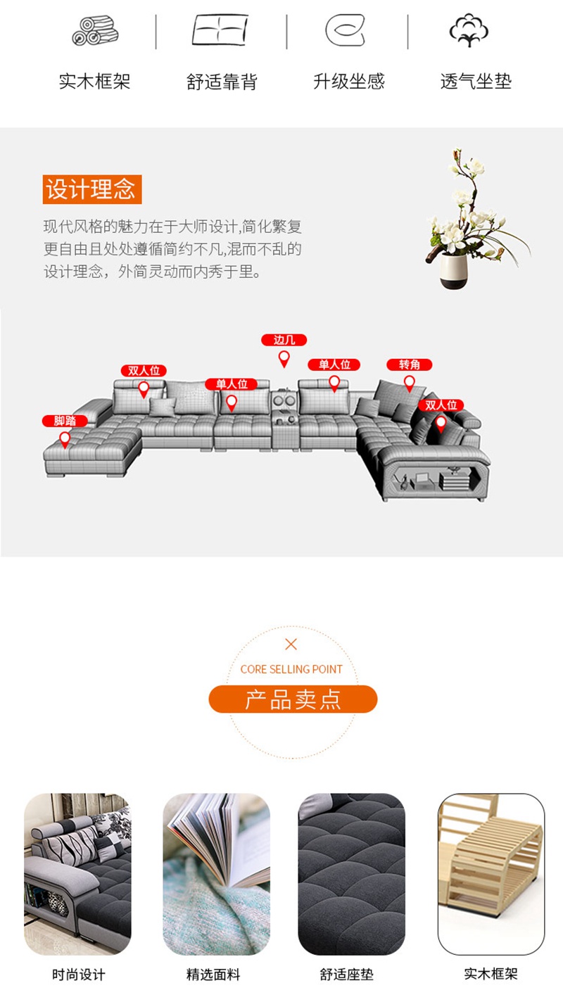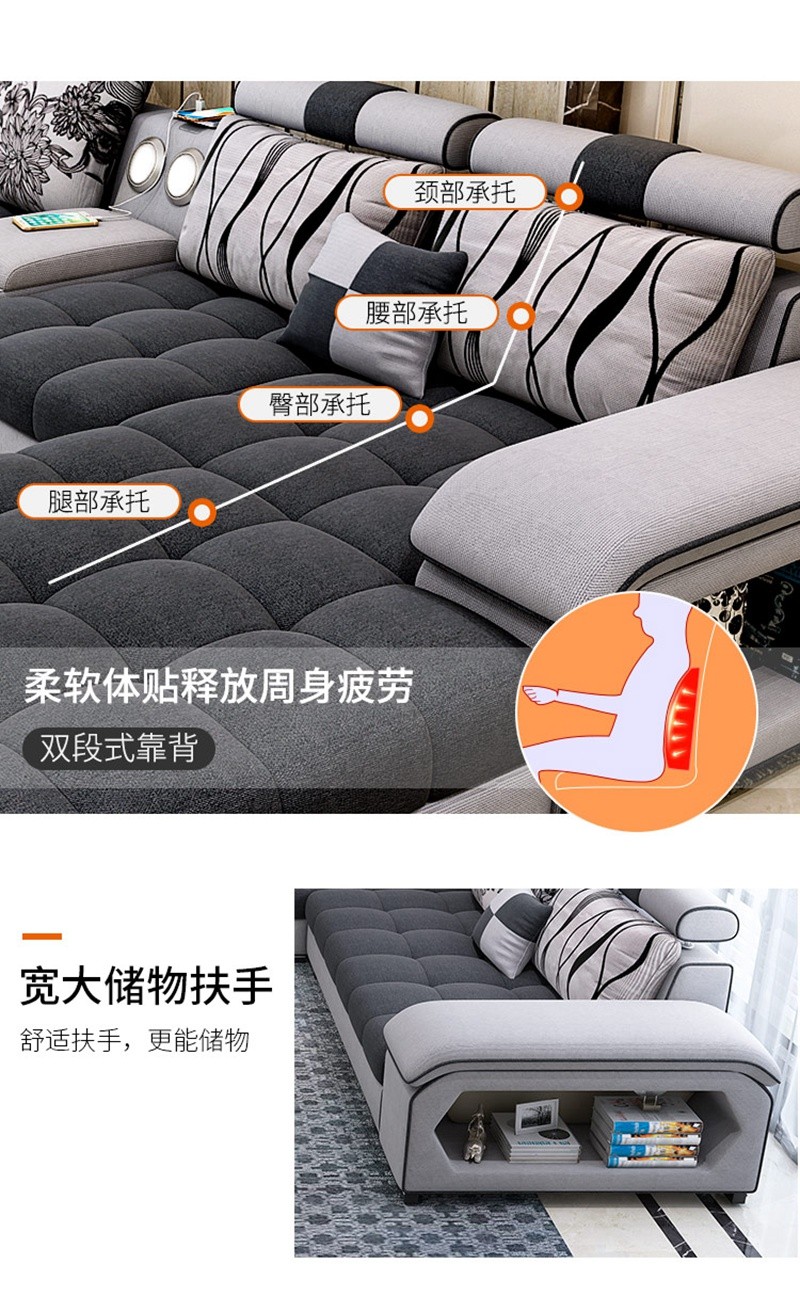 布艺沙发简约现代大小户型客厅转角北欧布沙发可拆洗组合整装家具