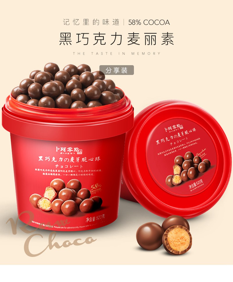 桶装怀旧黑巧克力夹心麦芽脆心球零食朱古力糖果送儿童